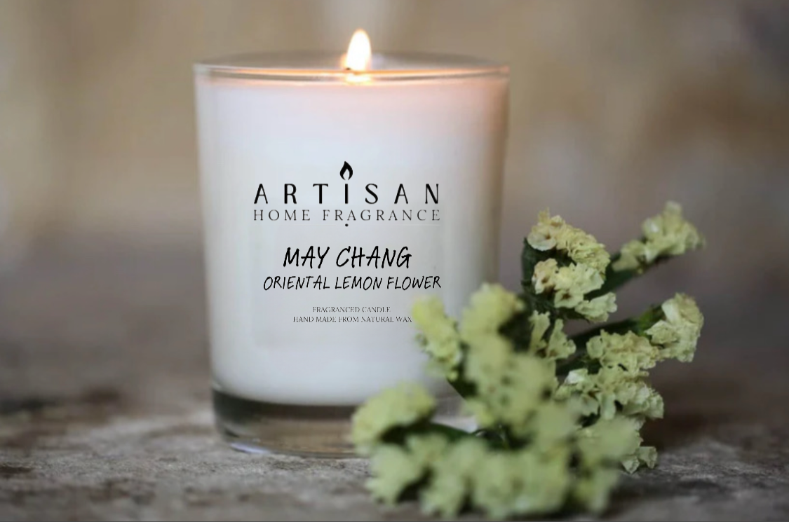 May Chang is an evergreen shrub with a vibrant peppery lemon fragrance. This clean fresh citrus candle opens with notes of fresh orange, lemon, May Chang and hints of lemongrass, leading onto delicate notes of rose with eucalyptus