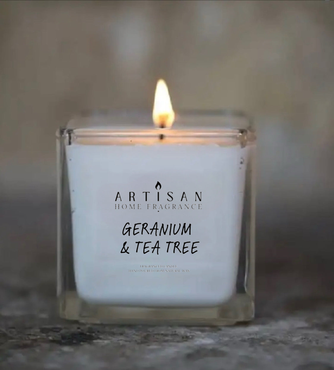 Widely revered for their holistic properties, the combination of geranium and tea tree oil is a powerhouse of feel good invigorating fragrance .